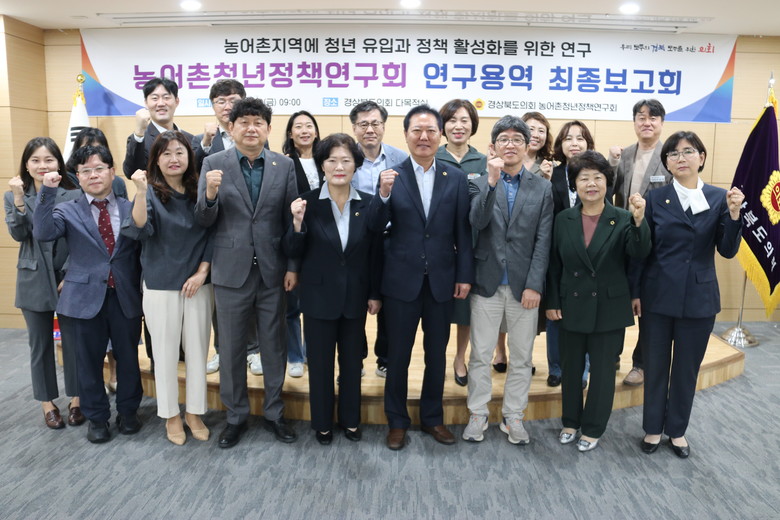 [경북 세계타임즈=한윤석 기자] 농어촌청년정책연구회(대표 남진복 의원)는 2024년 10월 11일 경상북도의회 다목적실에서 ‘농어촌지역에 청년 유입과 정책 활성화를 위한 연구 용역’ 최종보고회를 성황리에 개최했다.