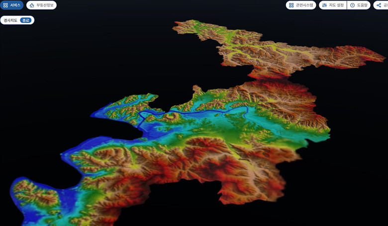 | ▲ 지도서비스 예시 경사지도 |