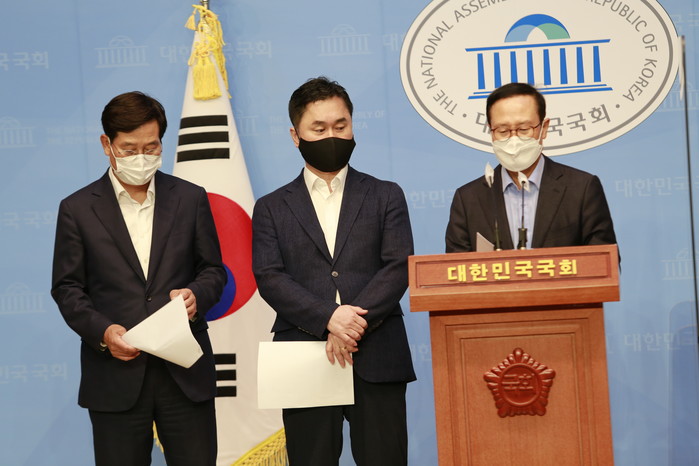 [세계타임즈 이진화 기자]더불어민주당 '친문'(친문재인) 핵심 홍영표·김종민·신동근 의원이 16일 오전 서울 여의도 국회 소통관에서 '이낙연 후보 지지선언 기자회견'을 열고 최대 승부처인 호남 경선을 앞두고 이낙연 전 대표에 대한 지지를 전격 선언했다.