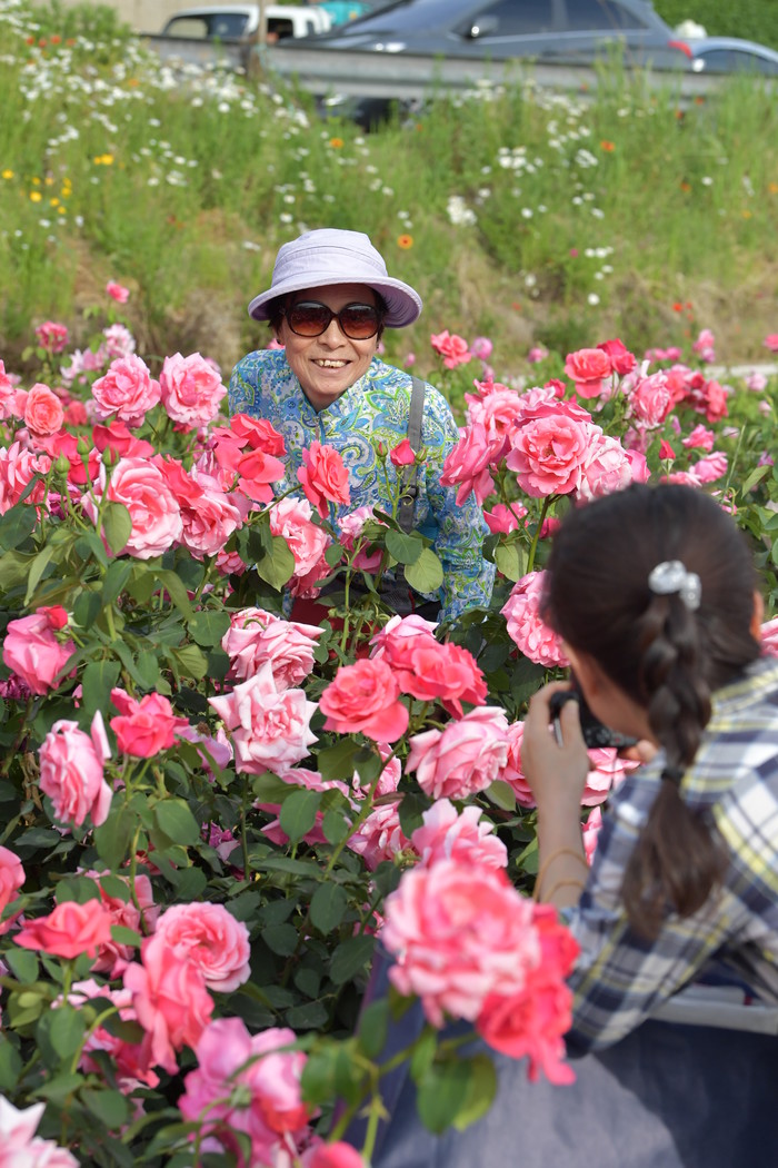 ☞ 25일(토) 서울장미축제를 함께 찾은 친구들이 중랑천 둔치에 조성된 분홍장미꽃밭에서 사진을 찍으며 즐거워하고 있다.