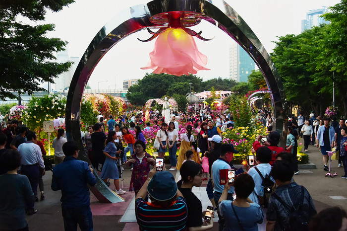 ☞ 25일(토) 저녁 많은 방문객들이 서울장미축제 5.15km의 장미터널을 찾아 야간조명과 함께 아름답게 핀 장미를 즐기며 걷고 있다.