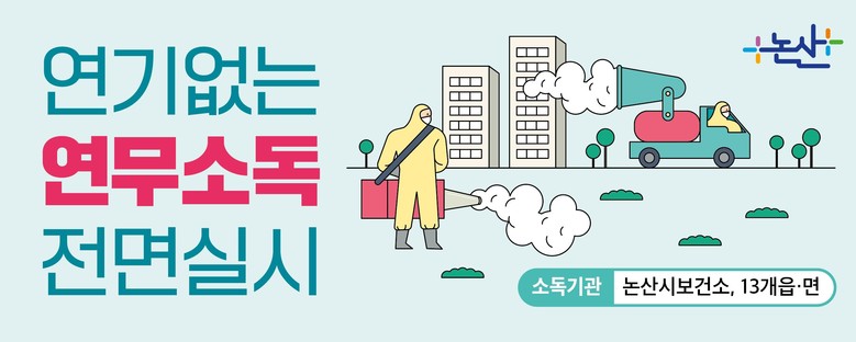 논산시는 지난 4월부터 하수구, 하천, 쓰레기장 등 방역취약지역을 중심으로 주기적인 분무소독을 통해 위생해충 방제를 추진하였으며, 6월부터 주거밀집지역과 차량 통행이 가능한 방역취약지역을 중심으로 야간 연무소독을 실시하고 있다.