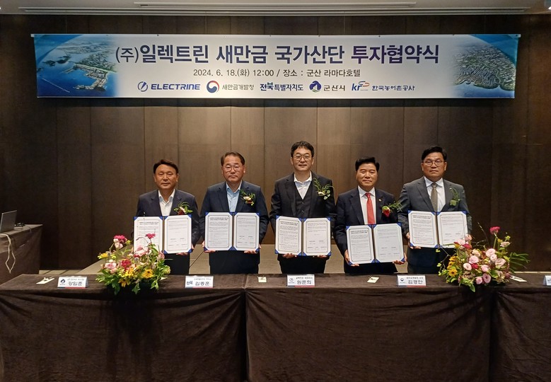 이날 협약식에는 김경안 새만금개발청장, 김종훈 전북자치도 경제부지사, 강임준 군산시장, 안재호 한국농어촌공사 단장, 원준희 ㈜일렉트린 대표 등이 참석했다.