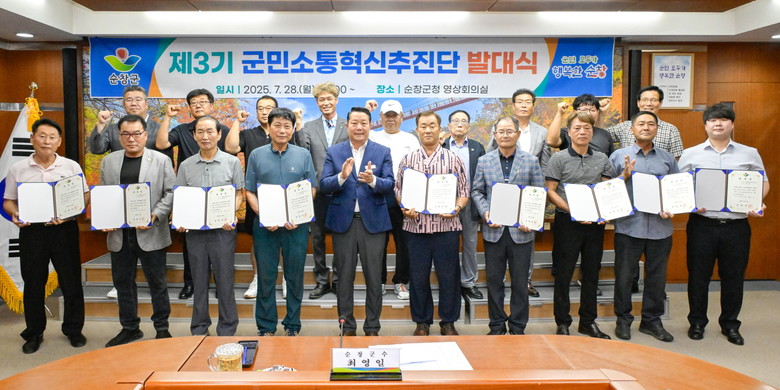 군은 지난 28일 군청 2층 영상회의실에서 제3기 군민소통혁신추진단 발대식을 열고 본격적인 활동을 시작했다. 발대식에는 최영일 순창군수와 단원 18명이 참석했으며, 위촉장 수여를 비롯해 단장 선출과 향후 운영 방향에 대한 설명이 이어졌다.