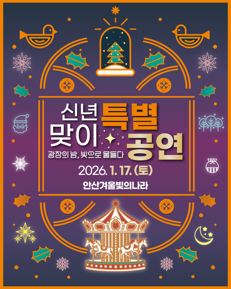 특별공연에는 인기 뮤지션 지올팍과 시온이 출연해 안산의 환한 겨울밤을 더욱 따뜻하게 물들이며, 시민들과 새해의 시작을 함께한다.