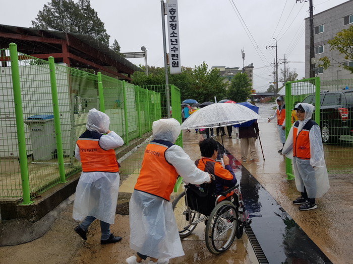 행사장에서 화장실 안내 봉사를 담당한 권영진, 이미옥 회원들은 “멀리 야외에 나들이 나오신 장애인분들께서 즐겁게 보내시는 모습에서 행복과 보람을 느낀다.“고 말했다.