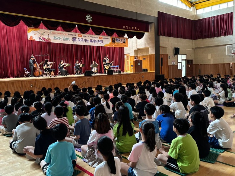 [시흥시 세계타임즈=송민수 기자] 냉정초등학교는 지난 6월 27일 찾아가는 오케스트라 공연을 개최하여 학생들에게 큰 환호를 받았다. 이 특별한 행사는 학교의 문화예술교육 프로그램의 일환으로, 학생들에게 음악의 감동과 예술의 아름다움을 경험하는 기회를 제공하기 위해 마련되었다.