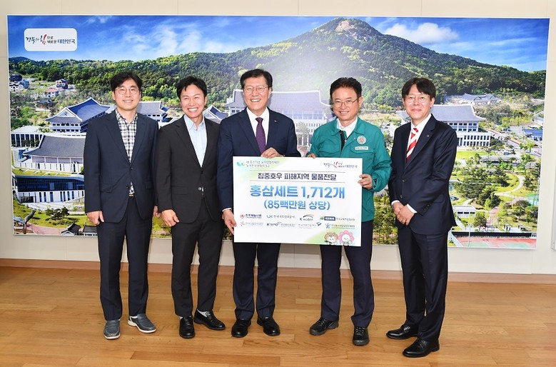 LX공사 최규명 부사장은 9월8일 경북도청에서 국민체육진흥공단 담당자등과 함께 집중호우로 피해를 입은 이재민들의 신속한 복구 지원을 위한 구호물품 전달식에 참석했다.