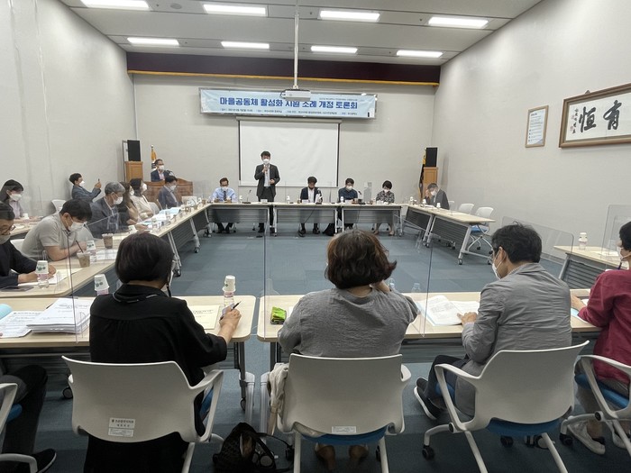 시의회 행정문화위원회(위원장 김태훈)와 (사)시민정책공방는 공동으로 지난 7일 오후 3시 부산시의회 중회의실에서 ‘마을공동체 활성화 지원 조례 개정 토론회’를 개최했다.