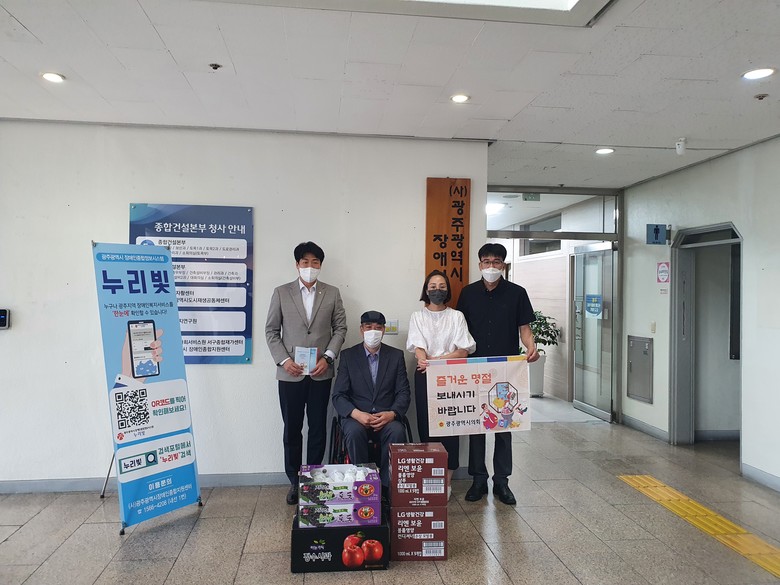 [광주 세계타임즈=손권일 기자] 광주광역시의회 강수훈 운영위원장은 5일 오전 추석 명절을 맞아 둥구 계림동에 위치한 풍경장애인주간보호센터를 방문해 위문품을 전달하고 관계자를 격려했다.