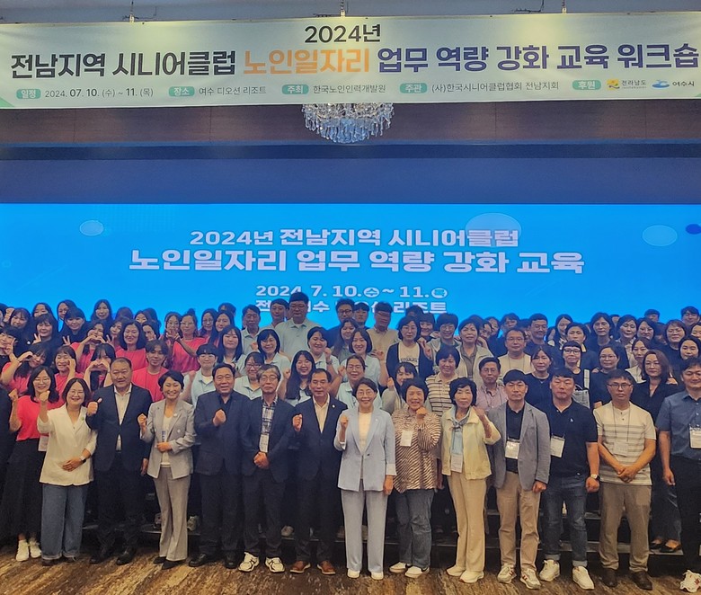 2024년 전남지역 시니어클럽 노인일자리 업무 역량 강화 교육은 7월 10일 부터 이틀간 여수 디오션리조트에서 열렸으며, 시니어클럽 종사자 역량 공유 및 효과적인 노인 일자리 프로그램 운영을 위한 교육과 사례 중심 맞춤형 노무교육을 실시했다.