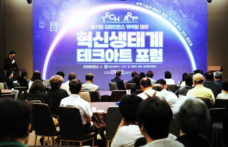 [서구 세계타임즈=이채봉 기자] 대전 서구(구청장 서철모)는 지난 22일 대덕테크노밸리 내 윕스퀘어(세계지식재산광장)에서 ‘혁신생태계 테크아트 포럼’을 개최했다고 23일 전했다.