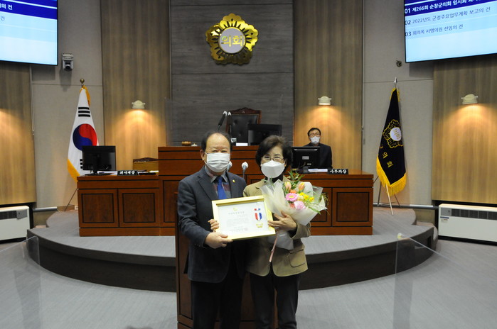 이기자 의원은 수상소감으로 “더 큰 무대에서 순창군과 순창군민의 든든하고 부지런한 일꾼이 되겠다”고 밝히며, “2022년 임인년은 군민 모두에게 기쁨과 희망이 가득한 한 해가 되길 바란다”고 전했다.
