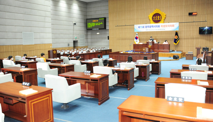 광주광역시의회는 학생 모의의회를 2005년부터 광주광역시교육청에서 학교를 추천받아 진행 중으로 지금까지 총 75회 8,100여명이 체험했고 11월 중에는 체험 우수 수기에 대해 시상할 예정이다.