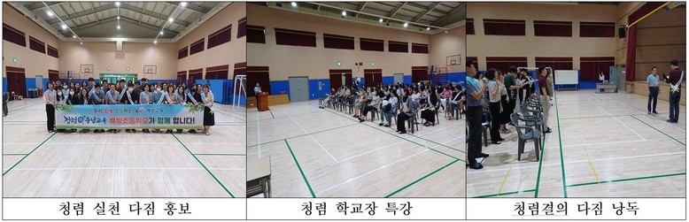 행사에 참여한 교직원들은 청렴 문화를 홍보하기 위해 청렴 다짐을 상징하는 어깨띠를 착용했으며 청렴 실천 서약 다짐문을 낭독하고 서약서에 서명하여 자발적으로 청렴 실천을 다짐했다.