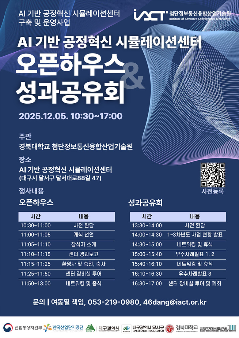 이날 오픈식을 통해 대구시는 센터의 공식 개소를 알리고, 지역 제조업체들을 위한 첨단 시뮬레이션 기반의 공정혁신 지원을 본격적으로 추진한다.