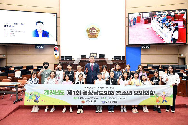 경상남도의회 청소년모의의회는 청소년들이 지방의회의 기능과 역할에 대해 이해하도록 돕고, 올바른 토론과 민주주의 의식을 기를 수 있도록 도내 초·중·고 학생들을 대상으로 도의회 의사진행 과정을 직접 체험할 수 있도록 하는 프로그램으로 2024년 총 5회를 실시할 예정이다.
