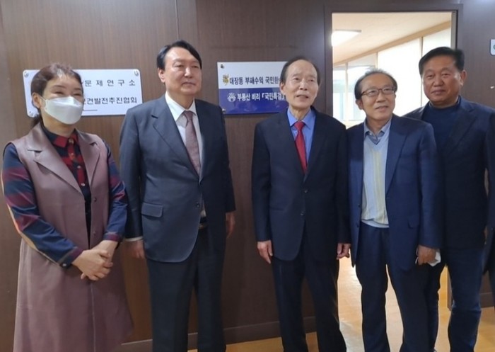 [세계타임즈 조용식 기자] 국민의힘 윤석열 대선후보가 권선동 사무총장을 대동하여 18일 장기표 전 대선 예비후보가 대표를 맡고 있는 서울 여의도 대장동부패수익국민환수단(이하 환수단) 사무실을 직접 방문했다.