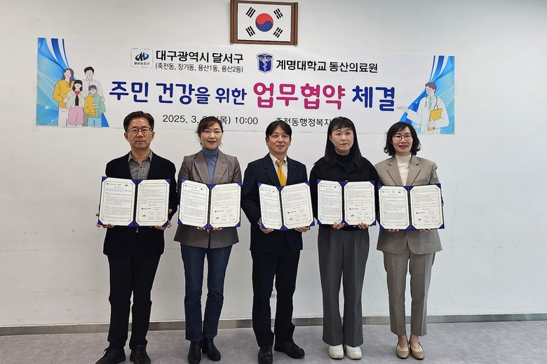 이태훈 달서구청장은 “이번 협약이 주민들의 건강한 삶을 영위하는 데 실질적인 도움이 되길 바라며, 앞으로도 긴밀한 협력으로 지역사회 발전을 위해 최선을 다하겠다”고 밝혔다.