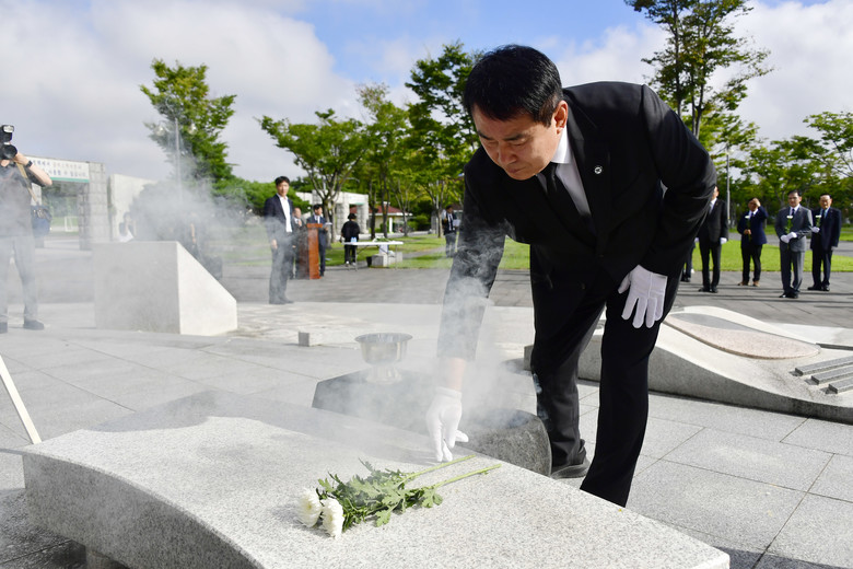 [광주 세계타임즈=손권일 기자] 이정선 광주시교육감은 15일 광복80주년을 맞아 상무시민공원 광주독립운동기념탑을 참배했다.