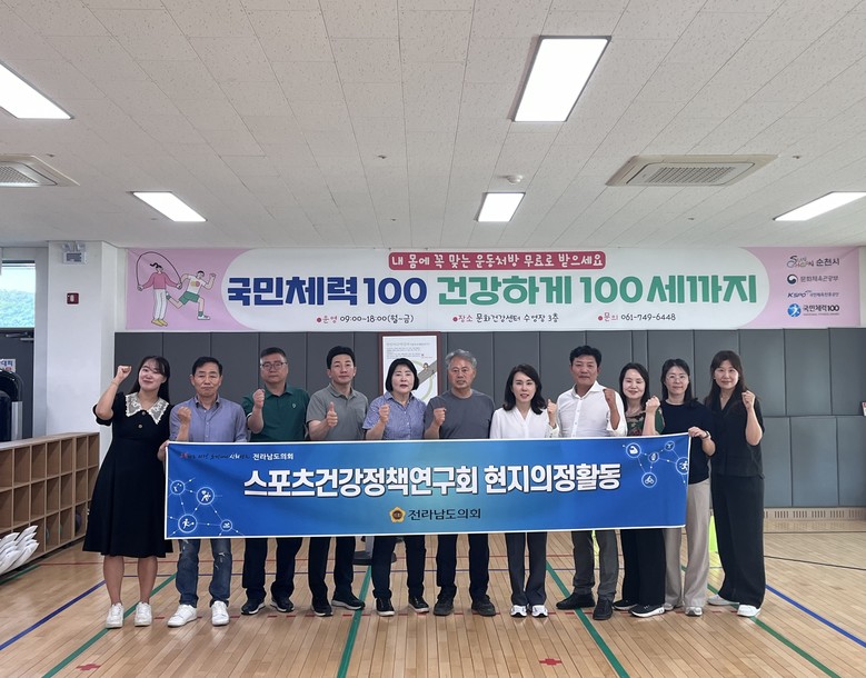 [전남 세계타임즈=우덕현 기자] 전라남도의회 의원 연구단체인 ‘스포츠건강정책연구회’(대표의원 박성재)가 지난 5월 23일 순천 체력인증센터를 찾았다.