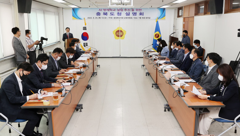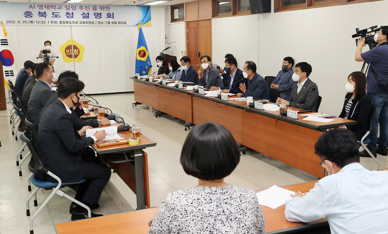 [충북 세계타임즈=이현진 기자] 충북도의회 교육위원회(위원장 김현문)가 25일(목) 오후 1시 30분 도의회 회의실(7층)에서 도의원과 도청, 교육청 관계자 등 15여명이 참석한 가운데 ‘AI영재학교 설립 추진’을 위한 간담회를 가졌다.