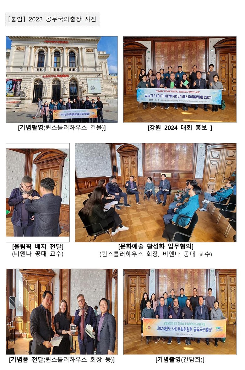 - 지난 2023년 3월 20일, 사회문화위원회가 오스트리아를 방문하여 문화예술 활성화를 위한 업무협의를 진행한 후,