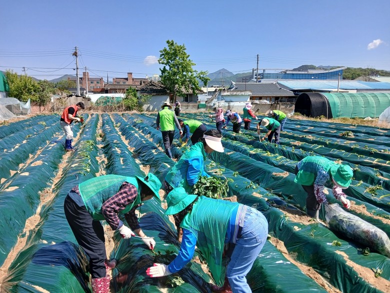 협의체는 며칠 전부터 비료 살포를 시작으로 로터리작업, 밭고랑 조성, 비닐 덮기 등 체계적인 사전 작업을 실시했으며, 이 날 본격적인 고구마 모종 이식 작업을 진행했다. 많은 협의체 위원들과 지역 주민들이 자발적으로 참여해 의미를 더했다.