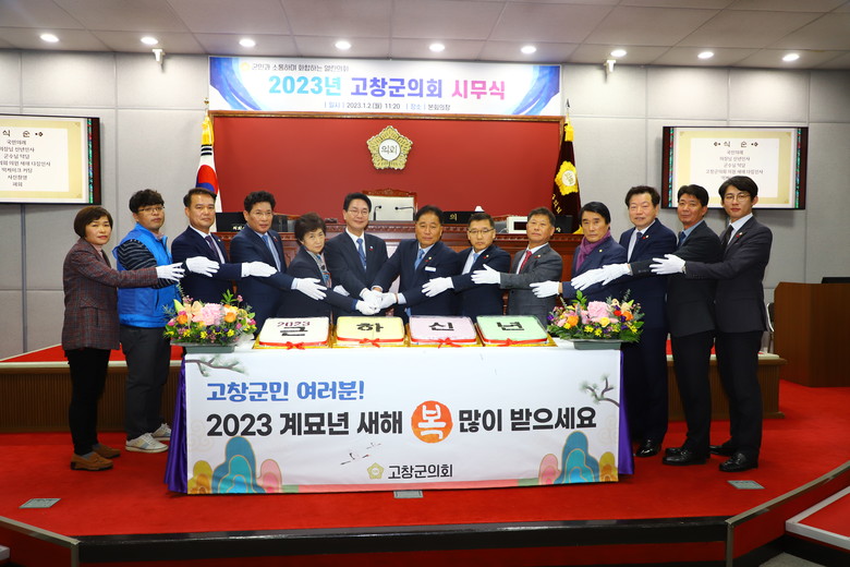 이날 시무식은 국민의례, 임정호 의장의 신년사, 심덕섭 군수의 축사, 고창군의회 의원들의 새해 다짐, 떡케잌 커팅 순서로 진행되었다.