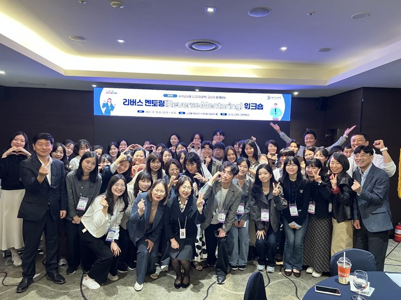 이날 행사는 지난 9월 온라인 사전 모임을 통해 자율적 ‘리버스 멘토링’을 이어온 중등 수석교사 56명과 신규(저경력) 교사 50명이 참여했다.