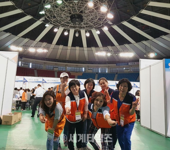 [대전=세계타임즈 이장성 기자] 5천명의 회원들이 활동하는 자발적인 SNS봉사 밴드인 사랑의 사다리 밴드(리더 이정제)는1일 오후1시~오후 5시 충무체육관에서 2017 대전시장애인 채용박람회 행사에서 즉석 빵 천개와 행사장 안내 봉사로 훈훈한 이웃사랑을 전했다.