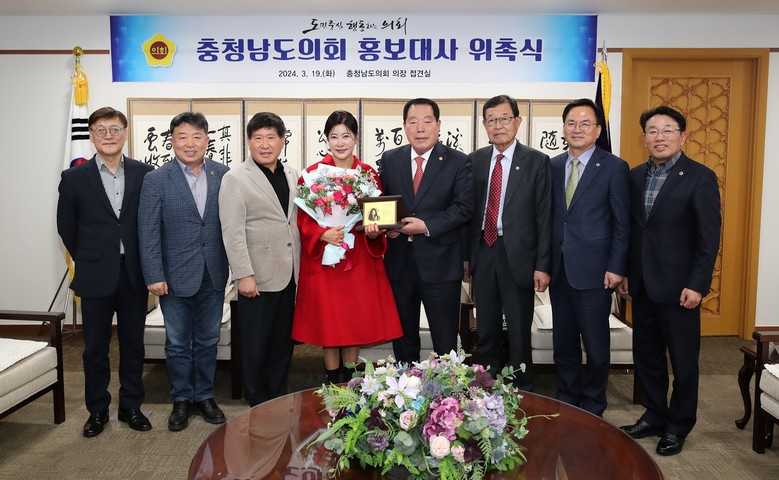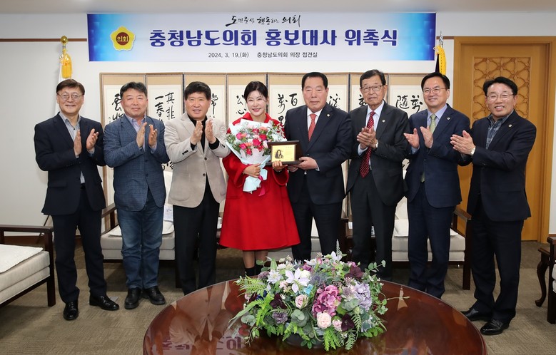 충남도의회는 19일 의장단과 상임위원장단, 운영위원장과 예산결산‧윤리특별위원장, 의회사무처 간부 공무원 등이 참석한 가운데 홍보대사 위촉식을 개최했다.