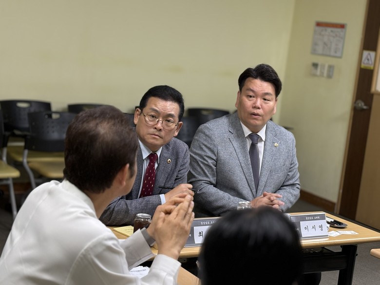 [경남 세계타임즈=최성룡 기자] 경상남도의회 교육위원회 소속 최동원(국민의힘, 김해3), 이시영(국민의힘, 김해7)의원은 24일 김해시 한사랑병원을 방문해 신진규 대표원장 및 관계자들과 간담회를 갖고, 병원형 WEE센터 및 대안교육 위탁교육기관 지정 방안을 논의했다.