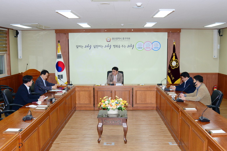 [울산 세계타임즈=이호근 기자] 울산광역시의회 정치락 의회운영위원장은 28일 오후 5시, 중구의회 2층 의원회의실에서 ‘울산시-구‧군 의회운영위원장 협의회 간담회’를 개최했다.