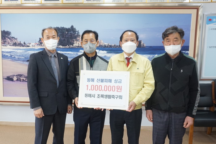 [동해시=세계타임즈 김민석 기자] ‘동해시 초록생활축구회(회장 임진열)’와 ‘나누고 모시고 섬기는 오카리나단 (이하 ’나모섬오카리나단‘, 단장 최연숙)’은 동해시의회(의장 김기하)를 방문해 산불피해 복구를 위한 성금 100만원을 각각 전달했다.