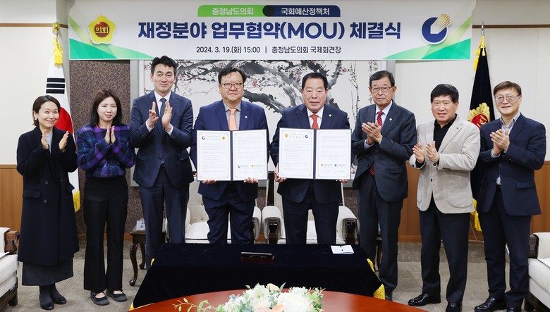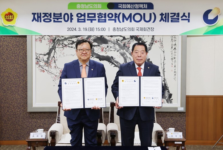 [충남 세계타임즈=백택기 기자] 충남도의회는 19일 충남도의회 국제회견장에서 국회예산정책처와 재정분야 교류와 협력을 강화하기 위한 업무협약을 체결했다.