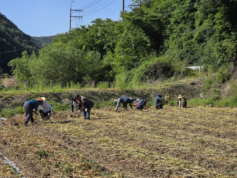 이날 환경사업소 직원 8명은 최근 인건비 상승과 고령화 등으로 노동력 확보에 어려움을 겪고 있는 농가에 도움이 되고자 마늘 수확에 구슬땀을 흘리며 작업을 진행하였다.