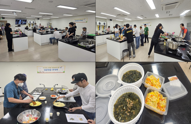 [서구 세계타임즈=이용우 기자] 부산 서구 초장동 지역사회보장협의체(위원장 정은숙)는 부산기독교종합사회복지관(관장 김정자)과 협력하여 고독사 예방 사업 “싱글(Single)벙글 투게더”를 운영하고 있으며, 지난 24일 관내 독거 중장년 남성 10명을 대상으로 초계탕과 들깨 버섯 무침을 직접 만드는 “여름철 보양식 만들기” 프로그램을 진행하였다.