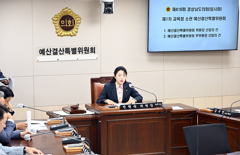 [경남 세계타임즈=최성룡 기자] 제416회 임시회 기간 중 경상남도의회(의장 최학범)는 제3기 교육청 소관 예산결산특별위원회 위원장에 전현숙(교육위, 국민의힘, 비례) 의원과 부위원장에 조현신(기획행정위, 국민의힘, 진주3) 의원을 각각 선임했다.