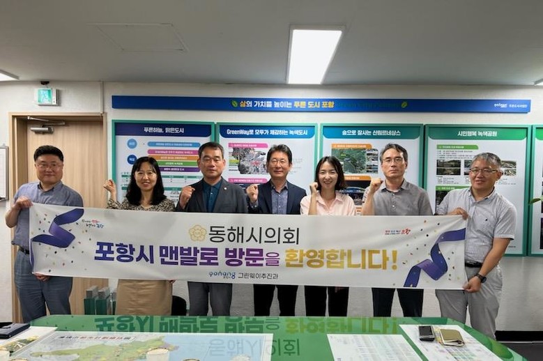[동해시 세계타임즈=김민석 기자] 동해시의회 최명관 부의장외 3명은 17일(목) 포항시 푸른도시사업단 그린웨이추진과(과장 이경식), 북구 보건소 건강관리과(과장 이재숙), 맨발학교 포항지회(지회장 장기현) 등을 방문해 맨발걷기 우수사례를 벤치마킹 했다.