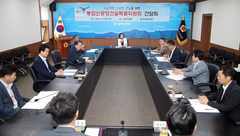 [대구 세계타임즈=한성국 기자] 대구광역시의회 통합신공항 건설 특별위원회(이하 ‘공항특위’)는 6월 13일(화) 오전 11시 대구시의회 2층 간담회장에서 ’성공적인 대구경북통합신공항 건설을 위한 특별위원회 간담회’를 개최했다.