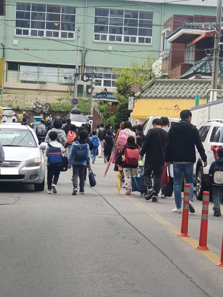 부안초등학교 인근 차도와 인도구분없는 이면도로통학 사진 |
