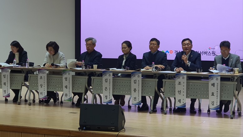 먼저 중앙사회서비스원의 조상미 원장과 경남사회서비스원의 임채영 수석연구원의 주제발표를 시작으로, 김은정 교수(부경대 사회복지학과), 김종건 교수(동서대 사회복지학과), 조인제 도의원(문화복지위원회), 이미화 과장(경남도 복지정책과)의 종합토론으로 이어졌다.
