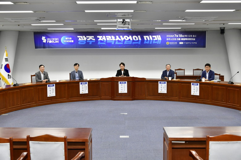 기조발제를 맡은 광주테크노파크 김영집 원장은 “발전전략 2030의 핵심가치와 실행방안으로 ▲초격차 선도기술 확보를 위한 과감한 투자로 첨단기술을 선도하는 광주, ▲실증기반 기업지원으로 혁신기업이 성장하는 광주, ▲미래혁신을 선도할 10만 창의인재가 모이는 광주”가 돼야 한다고 강조했다.