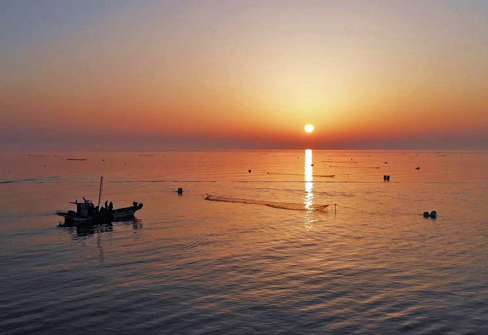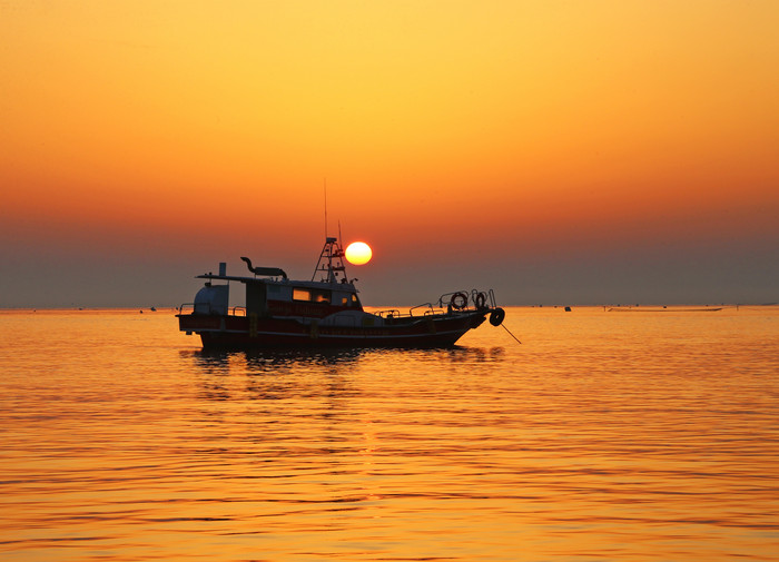 요즘 제철을 맞은 실치의 고장으로 유명한 당진시 석문면 장고항의 서해 일출이 아름다운 장관을 이루고 있다.