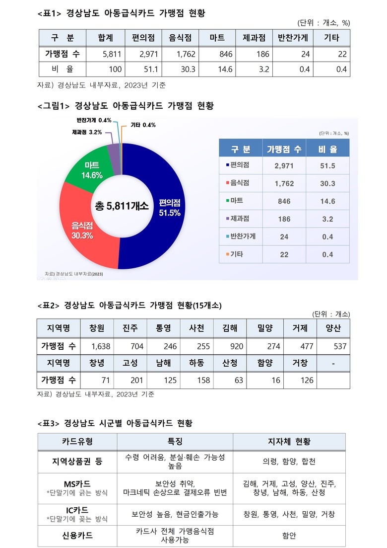 - “도내 아동급식카드 사용처 편의점이 절반이상, 지역별 편차 개선 필요”