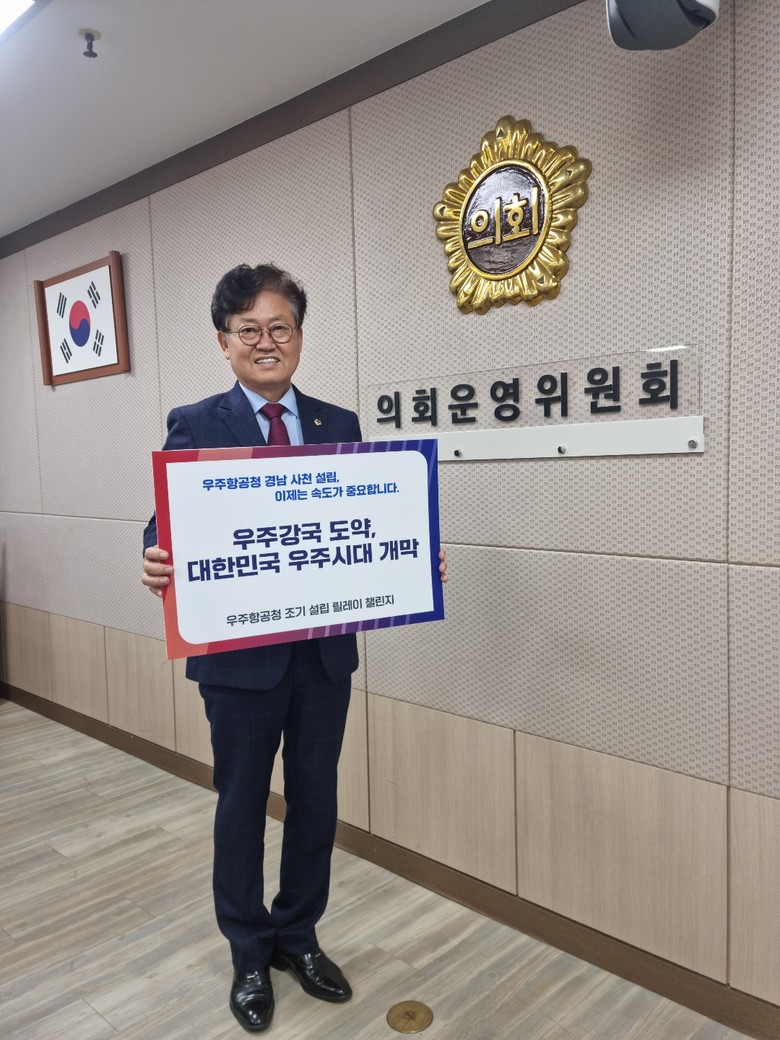 [경남 세계타임즈=최성룡 기자] 경남도의회 신종철 의회운영위원장(국민의힘, 산청)이 ‘우주항공청 조기 설립 릴레이 챌린지’에 동참했다고 21일 밝혔다.