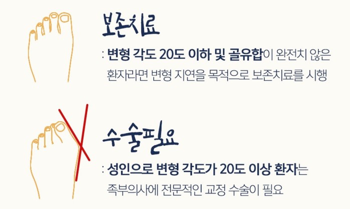 박 병원장은 이어 “무지외반증 변형은 고정형이 아닌 진행형이다. 교정기를 차도 변형은 진행되고 방치할 경우 더욱 빠르게 심화된다. 무지외반증은 뼈가 심하게 돌출되는 것만 문제가 아니다. 발은 우리 몸 2% 남짓 작은 면적에 수 많은 신경, 혈관, 인대 조직이 존재한다. 따라서 변형이 진행될 수 록 주변조직을 손상이 진행되어 심각한 합병증이 초래된다”며 “고정기를 착용하기보다는 병원에 내원에서 정확한 상태를 진단받고 그에 맞는 치료를 받는 게 합리적이다”라고 덧붙였다.