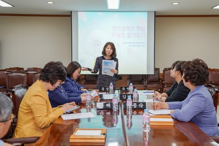 [수성구=세계타임즈 한성국 기자] 수성구의회 의원연구단체 「성인지적 관점의 여성정책연구회」(회장 육정미 의원, 회원 조규화, 홍경임, 황혜진, 김종숙, 김영애 의원)은 지난 13일 오후 1시 30분 의회 2층 회의실에서 전문가를 초청하여 첫 번째 강연회를 개최하고 성평등의식 확산을 위한 여성정책 개발과 입법활성화를 위한 조례 연구에 본격 돌입했다.