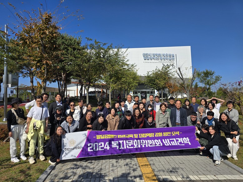 [천안시 세계타임즈=백택기 기자] 천안시의회(의장 김행금) 복지문화위원회(위원장 이종만)는 10월 31일부터 11월 1일까지 군산시 일원에서 ‘발달장애인 평생교육 및 자립역량강화 방안 모색’을 주제로 비교견학을 실시했다.